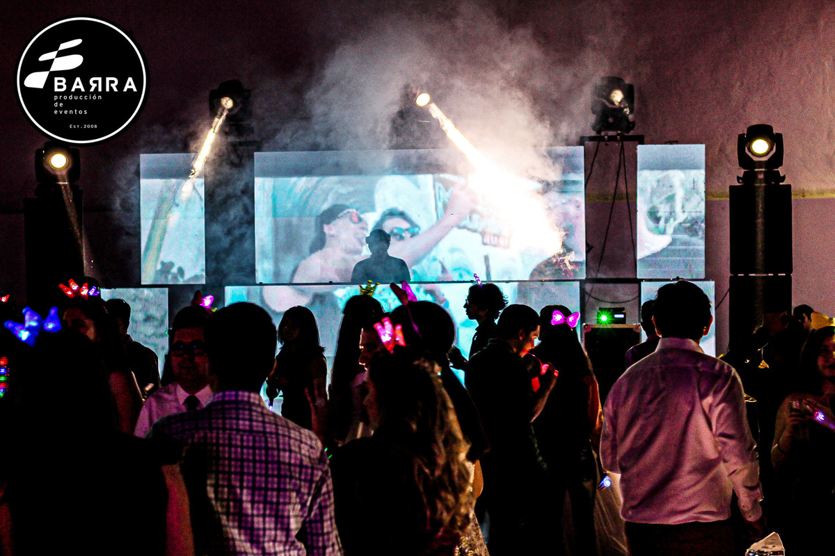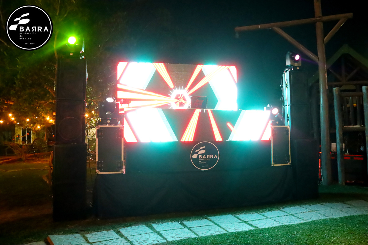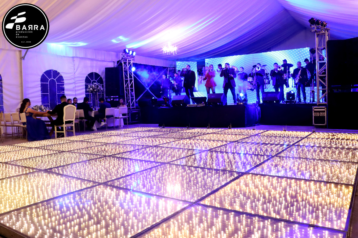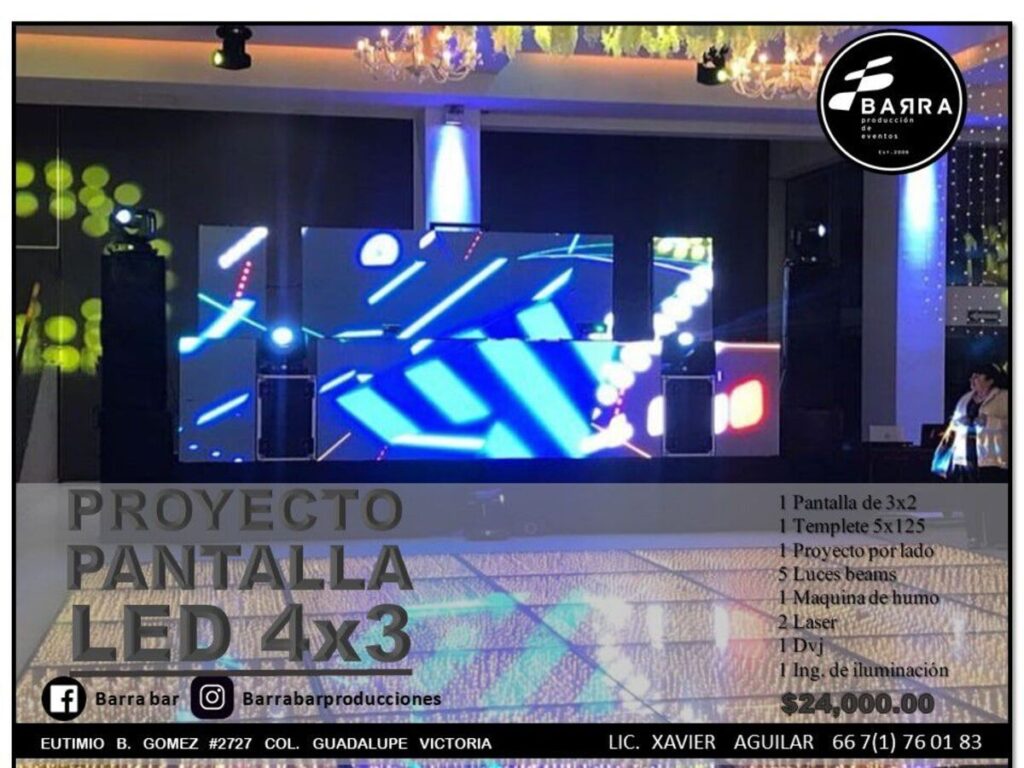 12 metros de pantalla8 luces beamAudio:1 proyecto por lado (2 bocinas y un bajo doble por lado)TempleteBola discoMáquina de humo y laser
