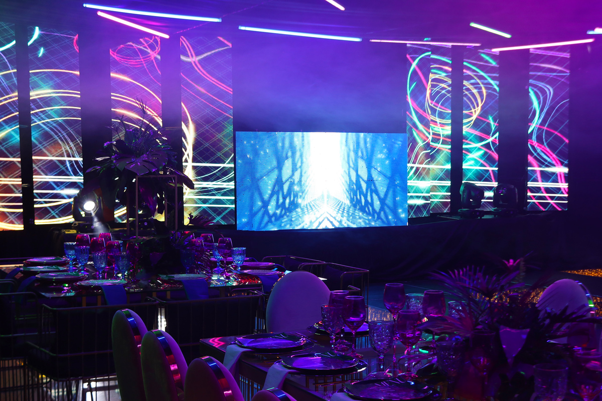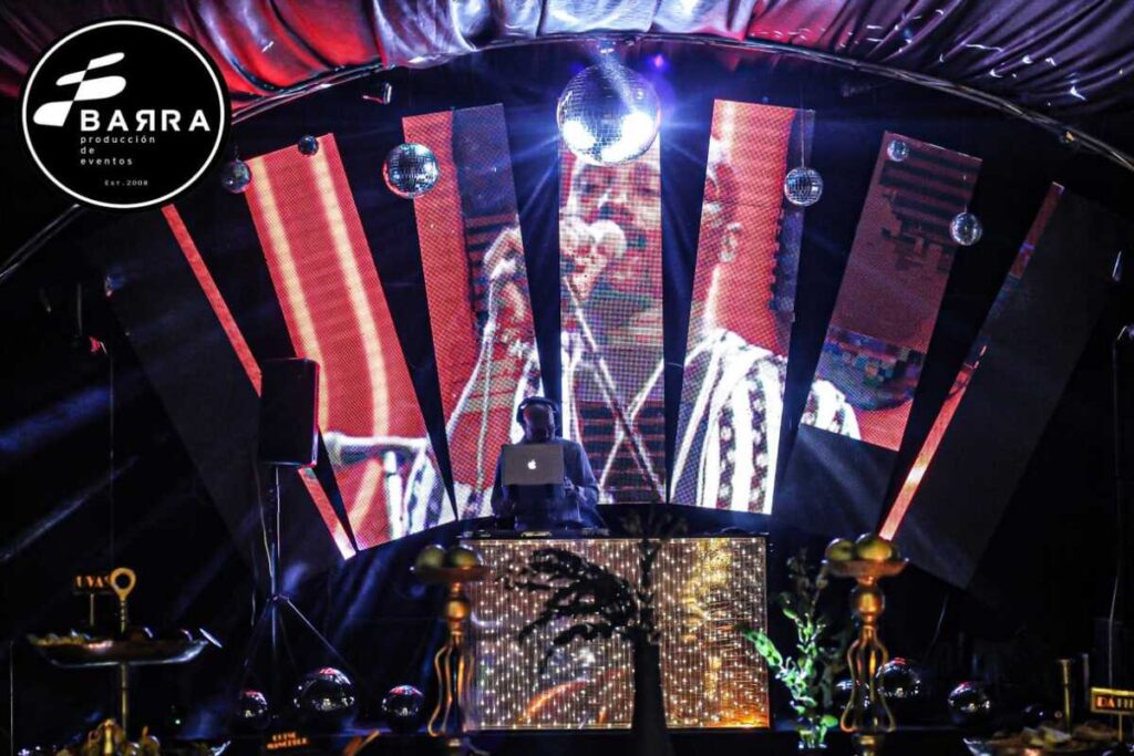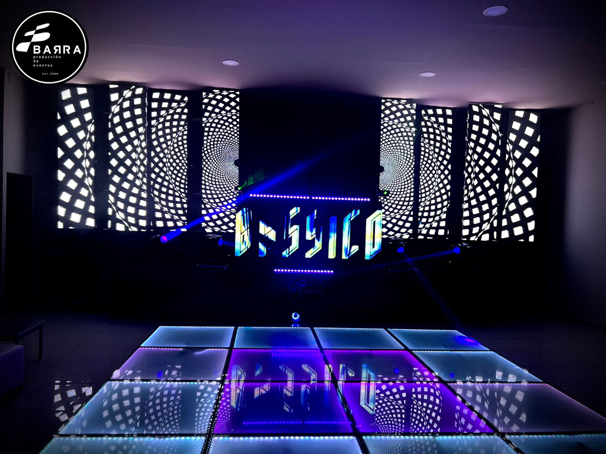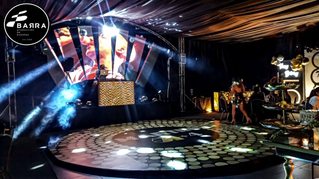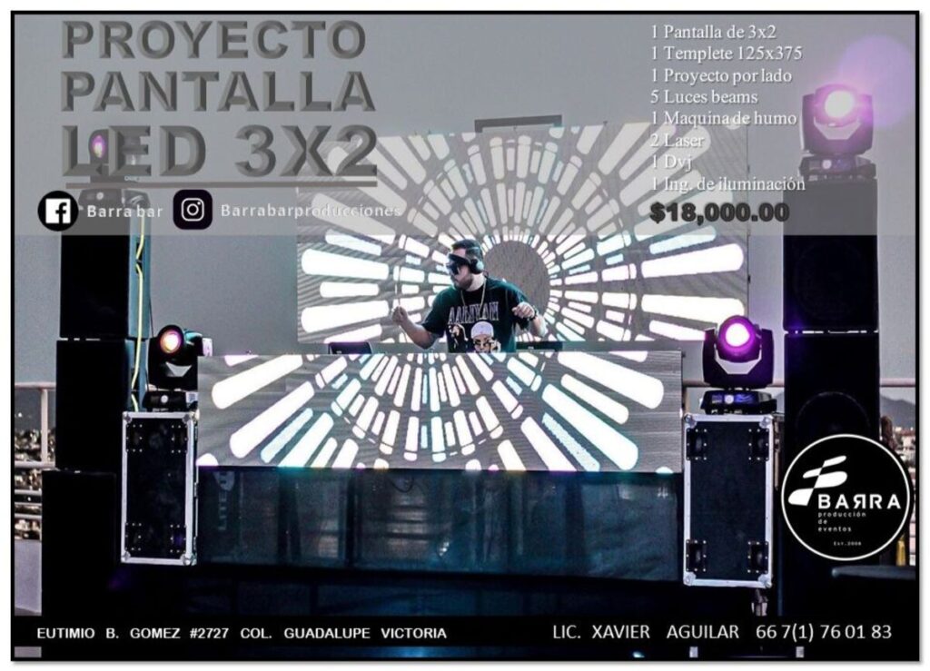 12 metros de pantalla8 luces beamAudio:1 proyecto por lado (2 bocinas y un bajo doble por lado)TempleteBola discoMáquina de humo y laser